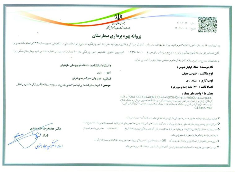 پنجشنبه ۱۶ مرداد ۱۴۰۴ گواهی نامه Email کسب گواهی کیفیت درجه یک از دانشگاه علوم پزشکی طی سالیان گذشته نشان از کیفیت خدمات ارائه شده دارد